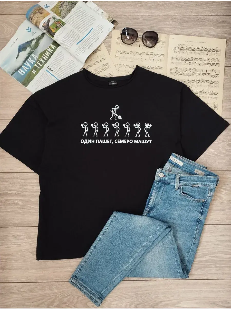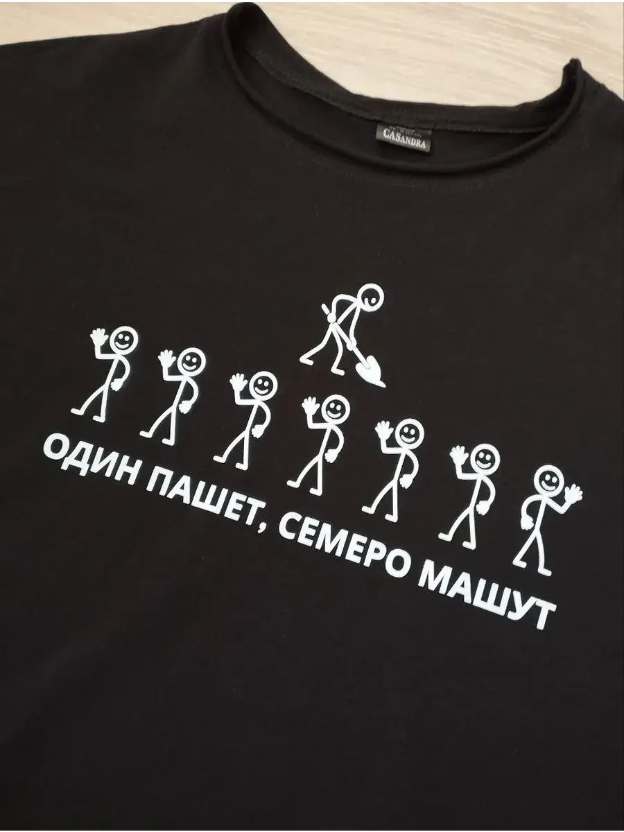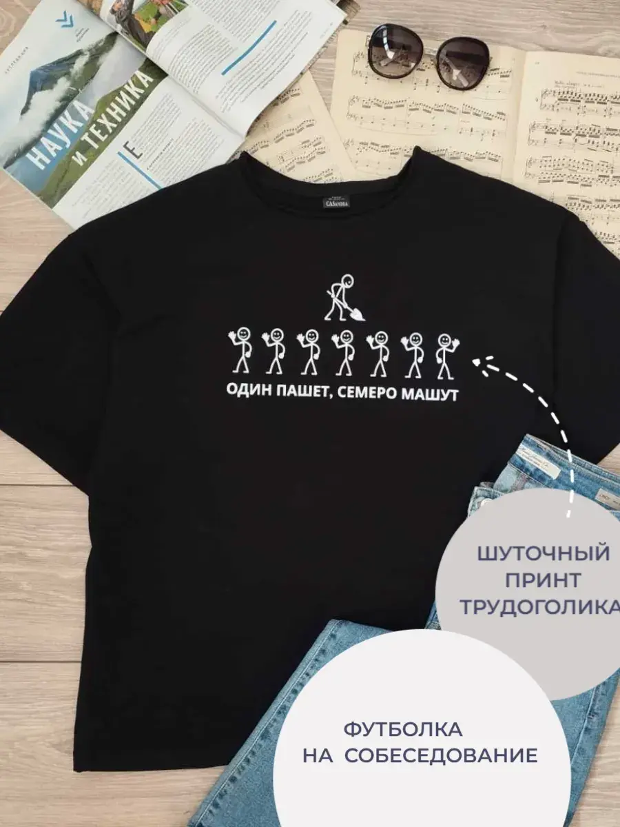 Футболка с шутливым принтом из лимитированной коллекции — идеальное сочетание стиля и комфорта. Это не просто очередная черная футболка с принтом - это возможность трудоголику с самоиронией начать рабочий день. Футболка для собеседования подчеркнет желание много трудиться и умение работать в команде.