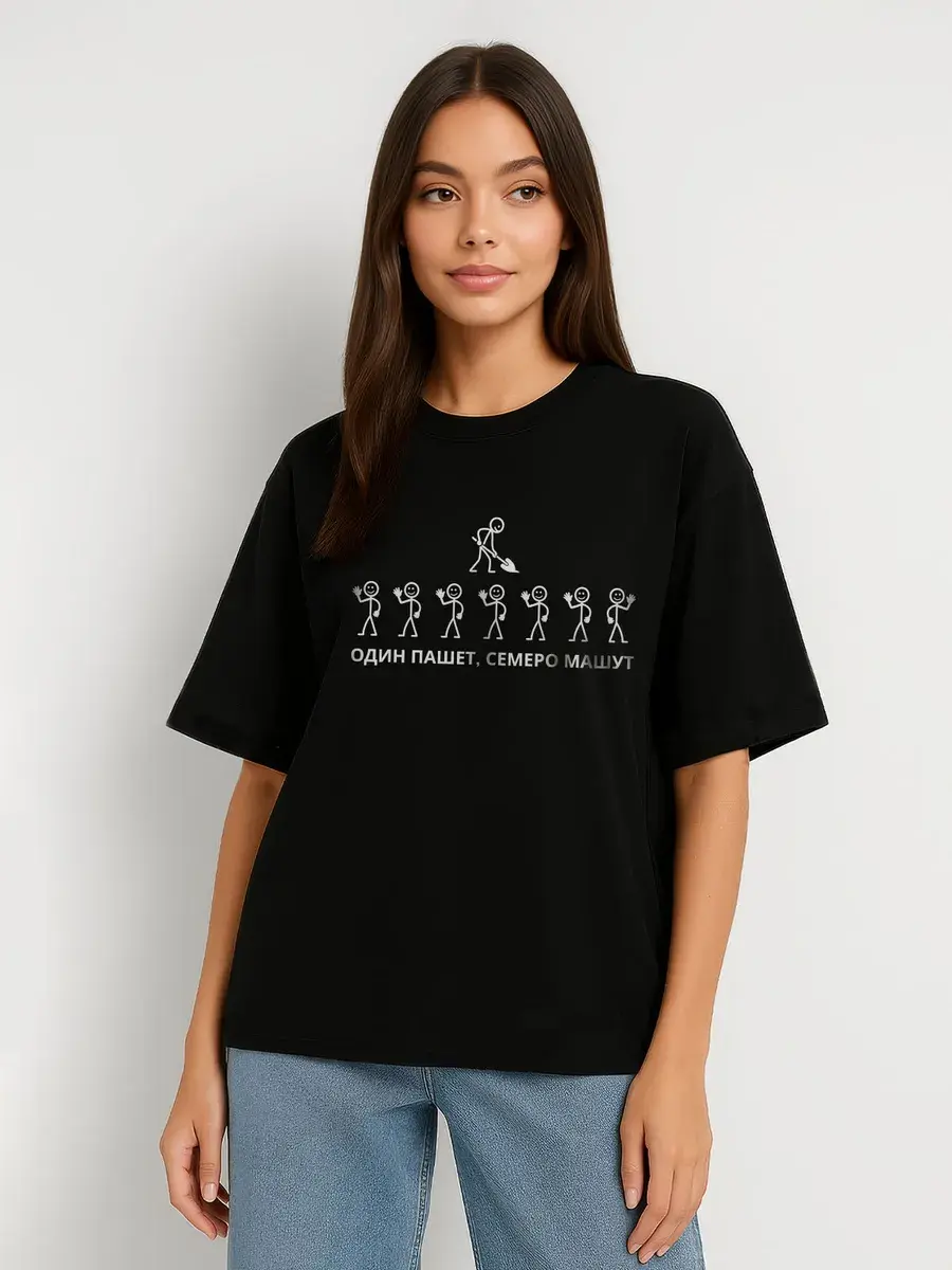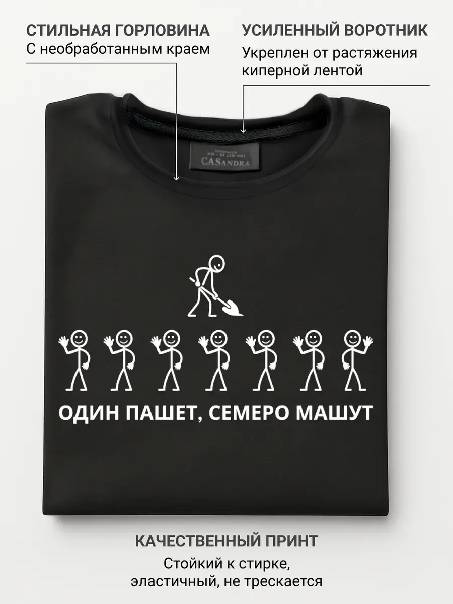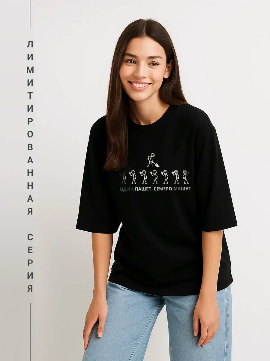 Футболка с шутливым принтом из лимитированной коллекции — идеальное сочетание стиля и комфорта. Это не просто очередная черная футболка с принтом - это возможность трудоголику с самоиронией начать рабочий день. Футболка для собеседования подчеркнет желание много трудиться и умение работать в команде.