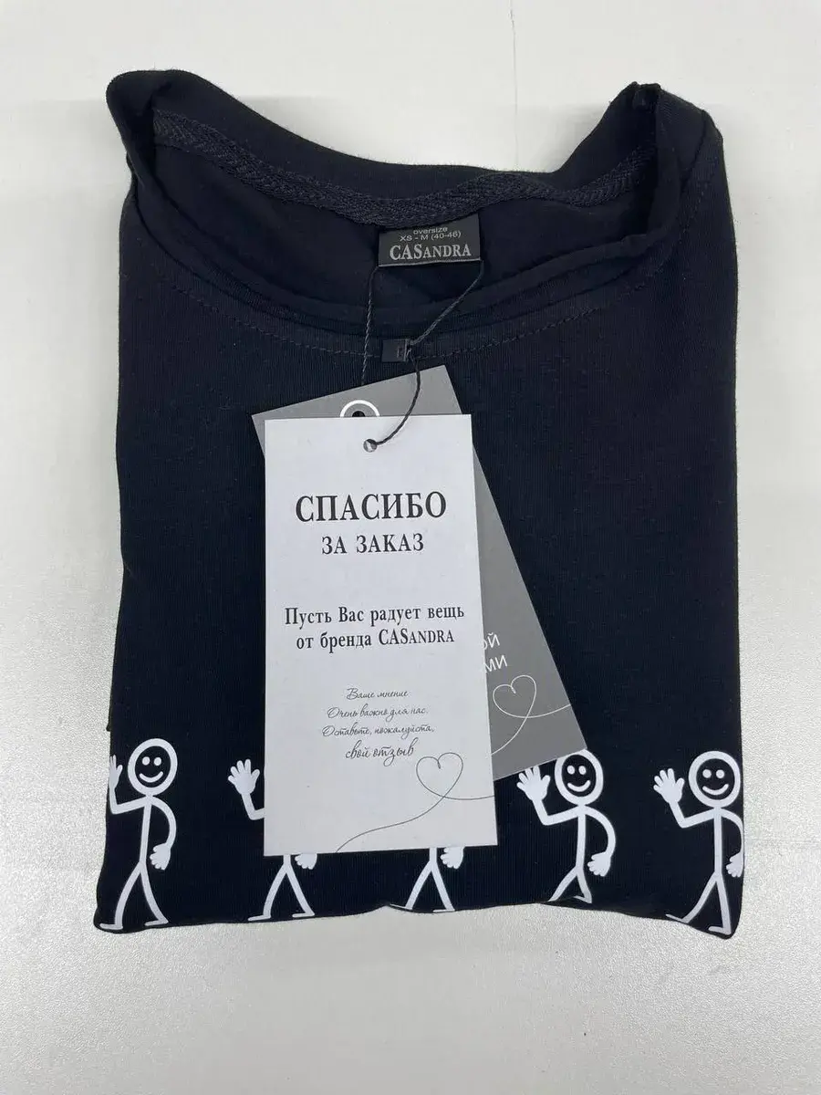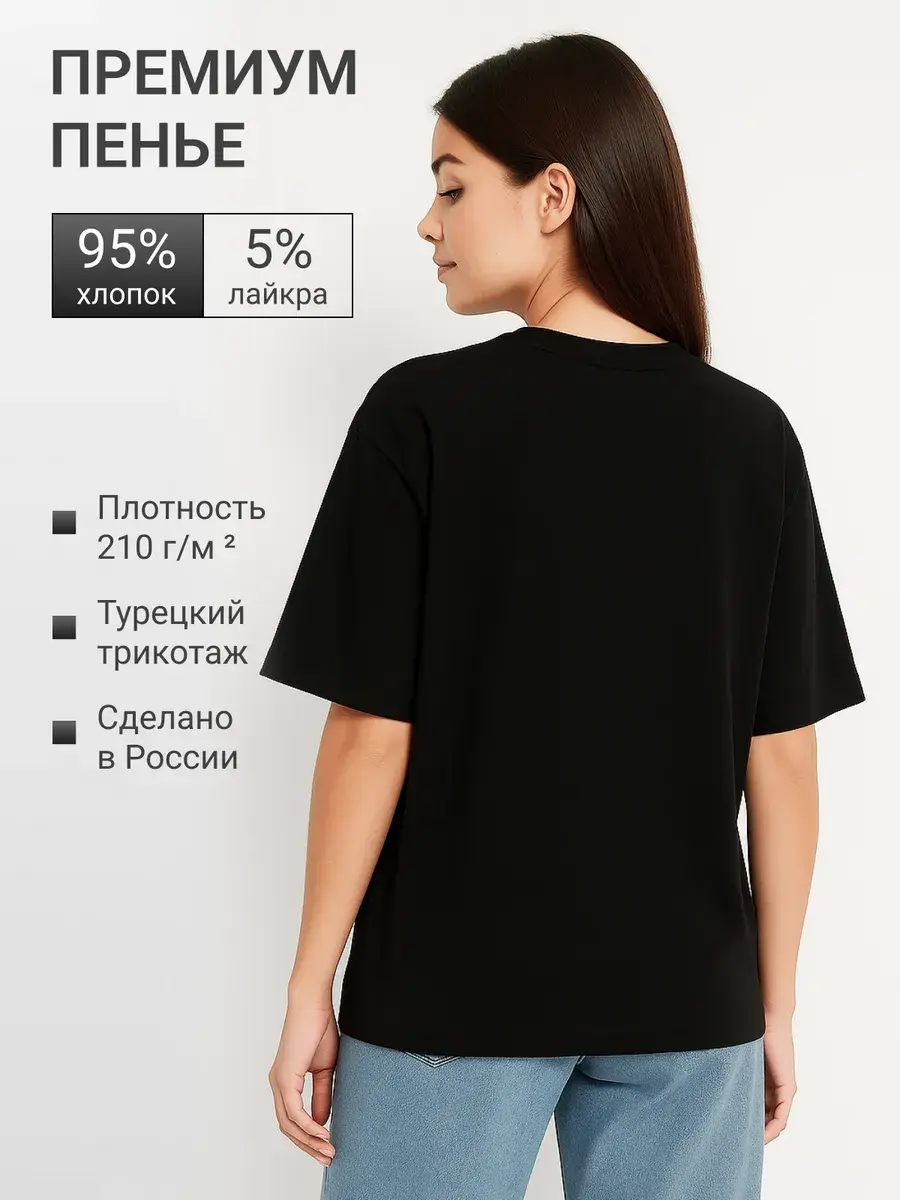 Свободный крой позволяет легко комбинировать ее с любыми вещами, эта черная футболка с принтом прекрасно подойдет как для прогулок по городу, так и для домашнего отдыха, работы и тренировок.