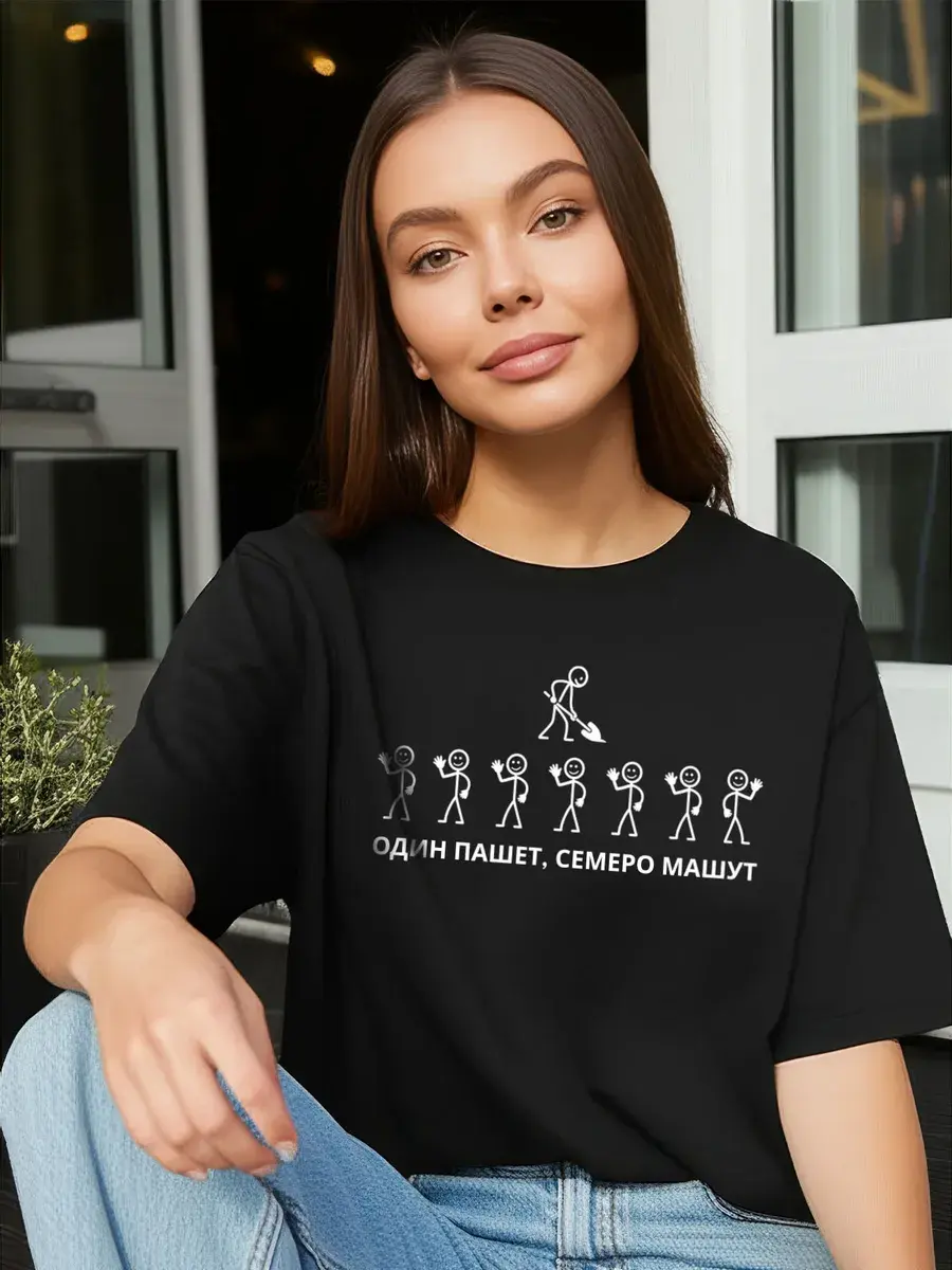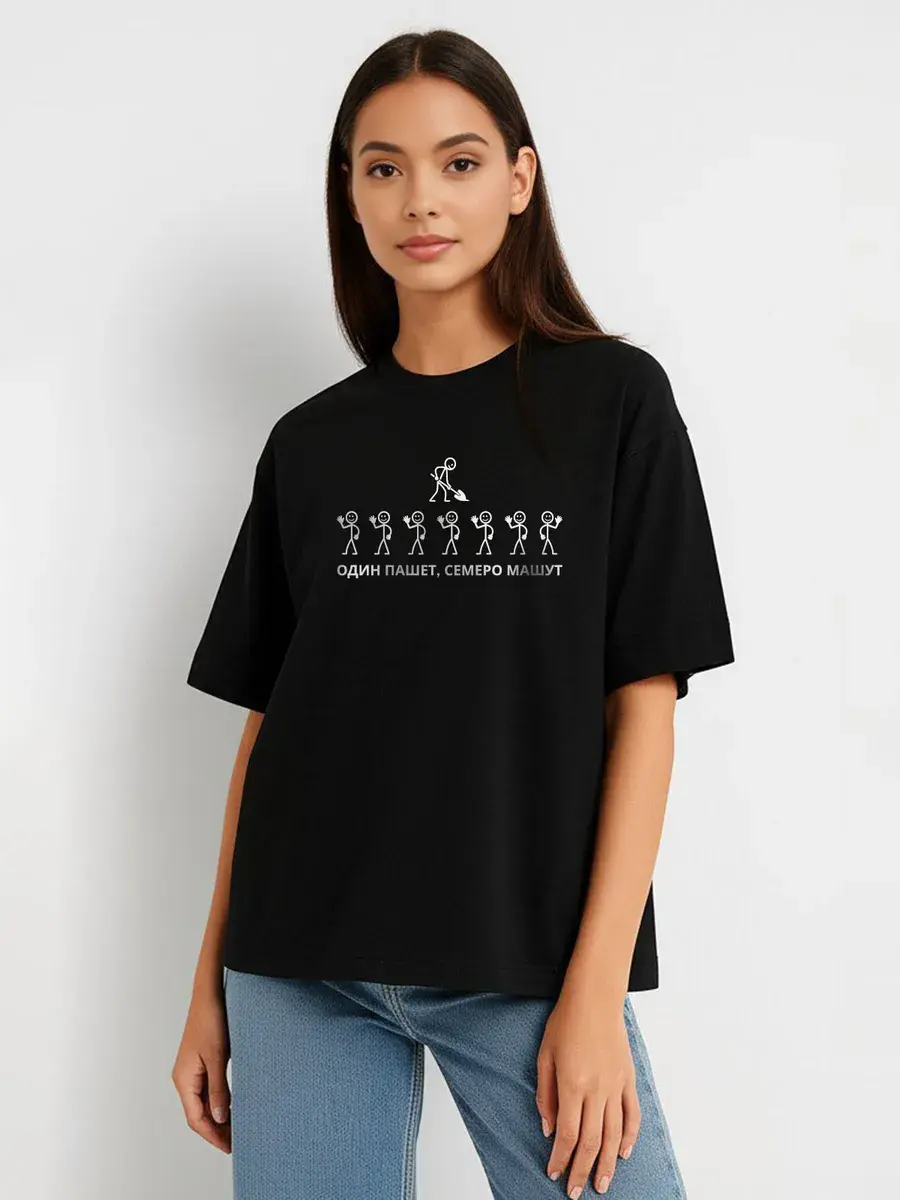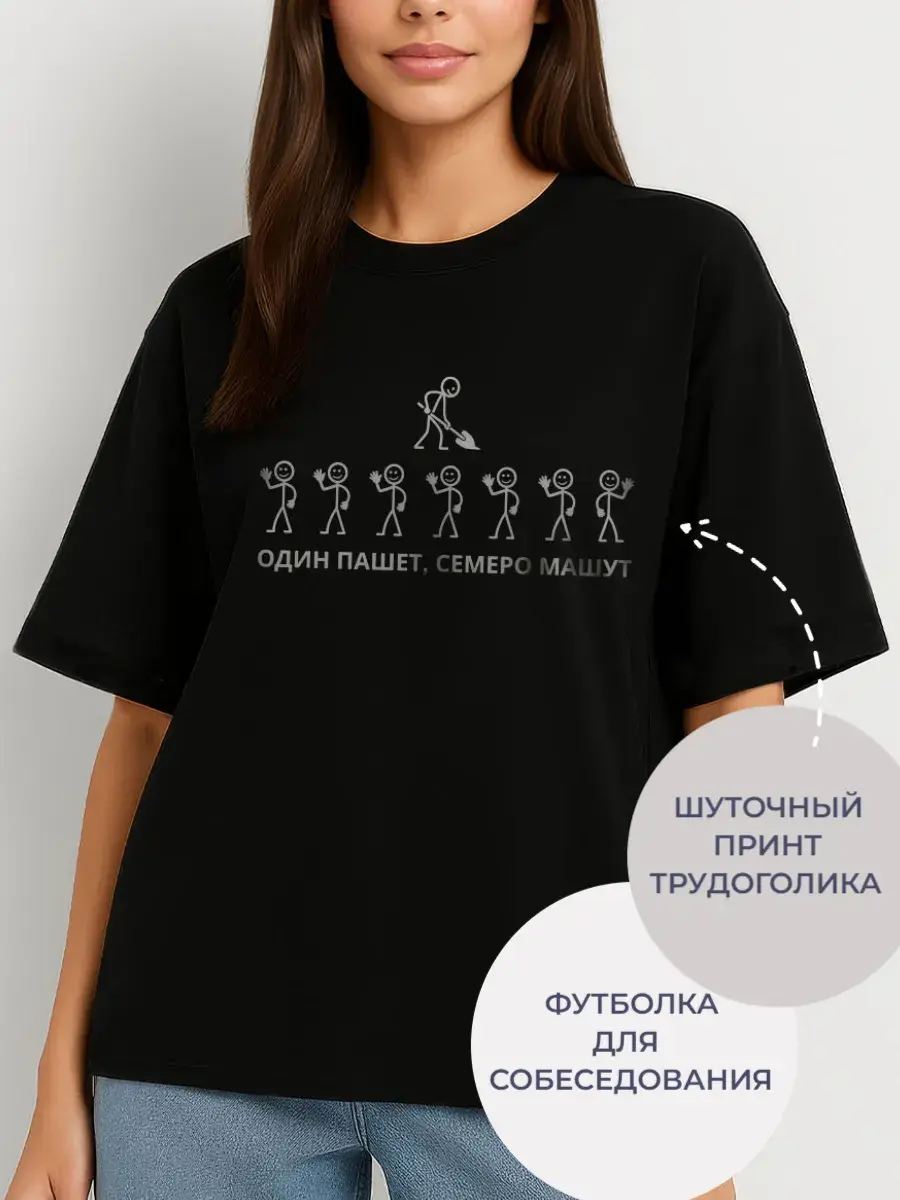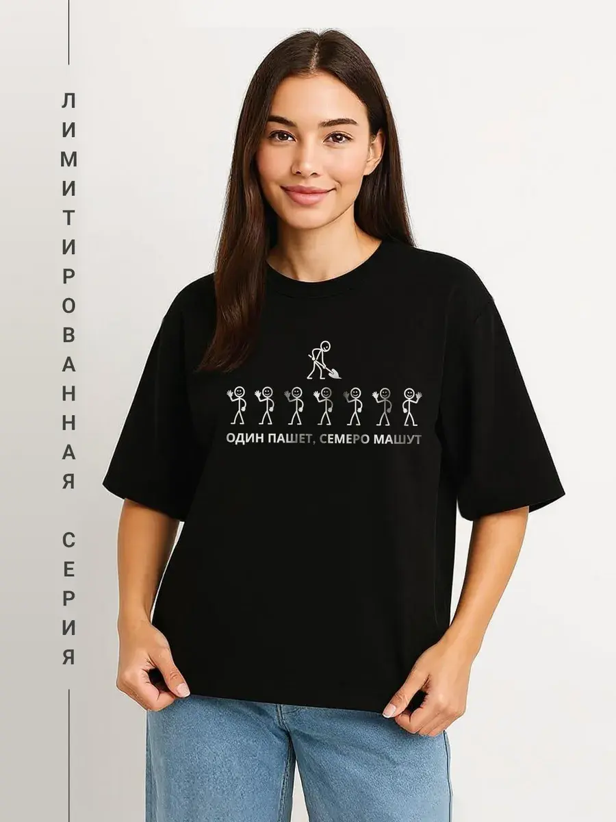 Представляем нашу футболку оверсайз из лимитированной коллекции с веселым принтом — говорящая, что на одном человеке замыкается одна общая задача, что человек умеет в командной работе принимать решение, что человек любит свою работу и т.д. Футболка - это идеальное сочетание стиля и комфорта. Это не просто очередная черная футболка с принтом - это вещь из ограниченной серии, которая станет вашим украшением в гардеробе. Веселый принт — для тех, кто любит юмор и готов делиться хорошим настроением с окружающими. Надпись дополняет этот посыл. Универсальность Футболка унисекс подходит как для мужчин, так и для женщин. Она отлично смотрится на любом росте и фигуре, что делает ее универсальным выбором для всех. Мы разработали идеальный крой oversize, который обеспечивает полную свободу движений и подходит на любую фигуру и на любой рост, в том числе для высоких и низких для полных и худых. У нее свободный крой, стильный и современный силуэт, удлиненный свободный рукав, спущенное плече, оригинальная горловина и принт с надписью. Комфорт и стиль Отшита из качественного турецкого трикотажа пенье 95% хлопка и 5% лайкра премиум качества. Обеспечивает максимальный комфорт в любое время года. Ткань дышащая, плотная, не скатывается и выдерживает многократное количество стирок. Свободный крой позволяет легко комбинировать ее с любыми вещами, эта черная футболка с принтом прекрасно подойдет как для прогулок по городу, так и для домашнего отдыха, работы и тренировок. Молодежная и модная футболка — настоящая находка для ценителей уличной одежды и продуманных образов. Яркие акценты Унисекс футболка – можно носить парами, отличный способ выразить себя. Уникальный дизайн выделит вас из толпы и придаст образу свежести. Ограниченное количество делает эту модель по-настоящему эксклюзивной. Это отличный подарок со смыслом на любой случай парню или девушке. Эта необычная футболка создана для уверенных в себе людей, стремящихся подчеркнуть свою индивидуальность. Добавьте в свой гардероб стильную и практичную футболку оверсайз с принтом и будьте в центре внимания!