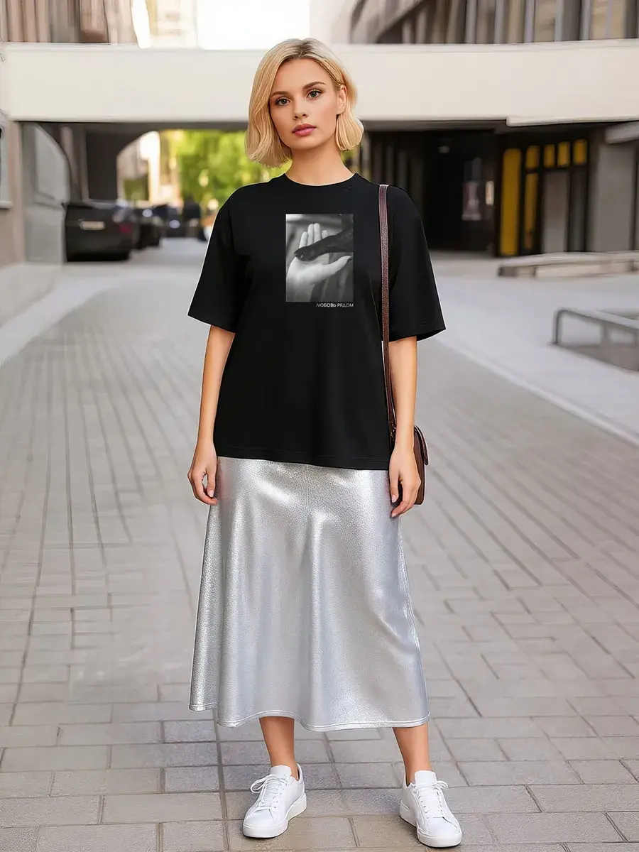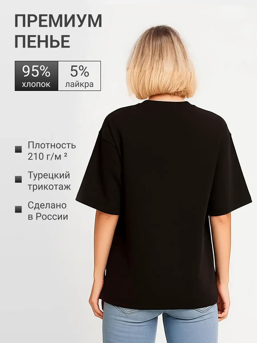 Свободный крой позволяет легко комбинировать ее с любыми вещами, эта черная футболка с принтом прекрасно подойдет как для прогулок по городу, так и для домашнего отдыха, работы и тренировок.