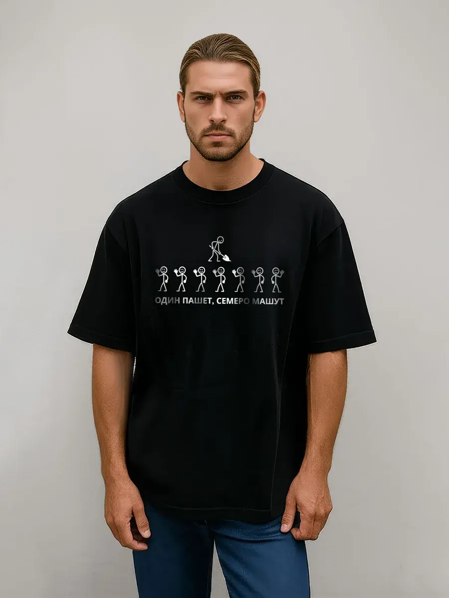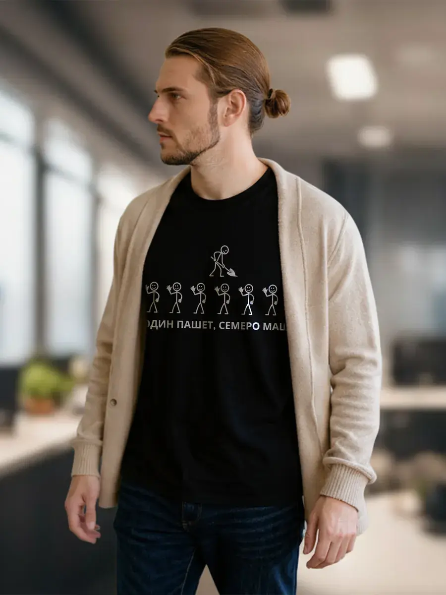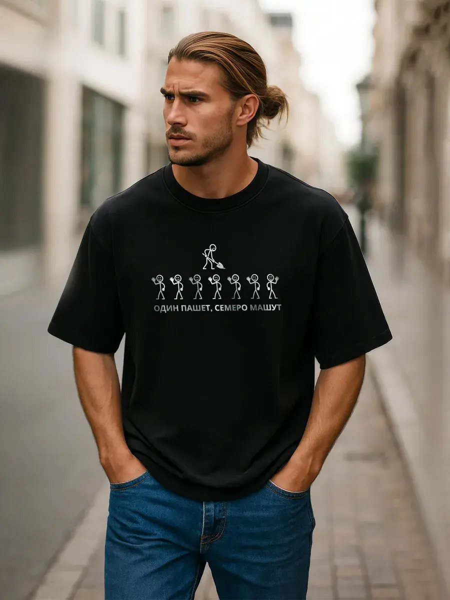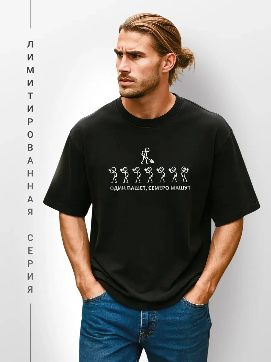 Представляем нашу мужскую футболку с надписью из лимитированной коллекции — идеальное сочетание стиля, юмора и комфорта. Это не просто очередная черная футболка с принтом - это вещь из ограниченной серии, которая станет вашим украшением в гардеробе.