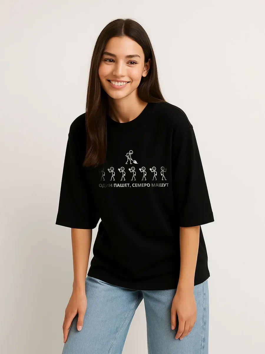 Футболка унисекс подходит как для парня, так и для девушки. Она отлично смотрится на любом росте и фигуре, что делает ее универсальным выбором для всех.